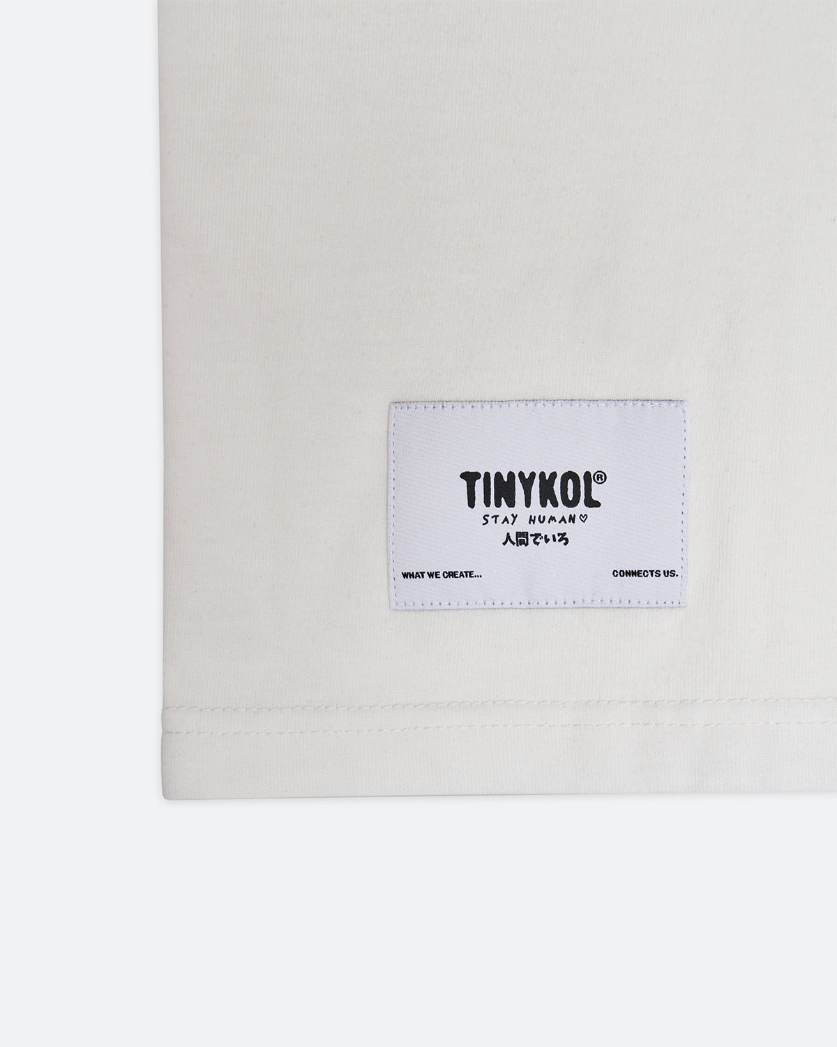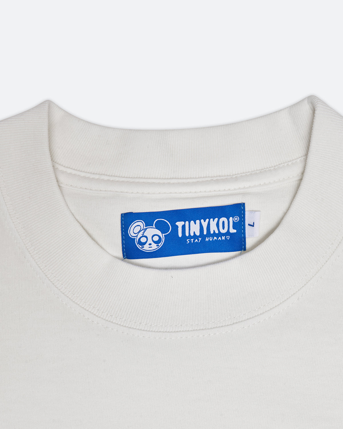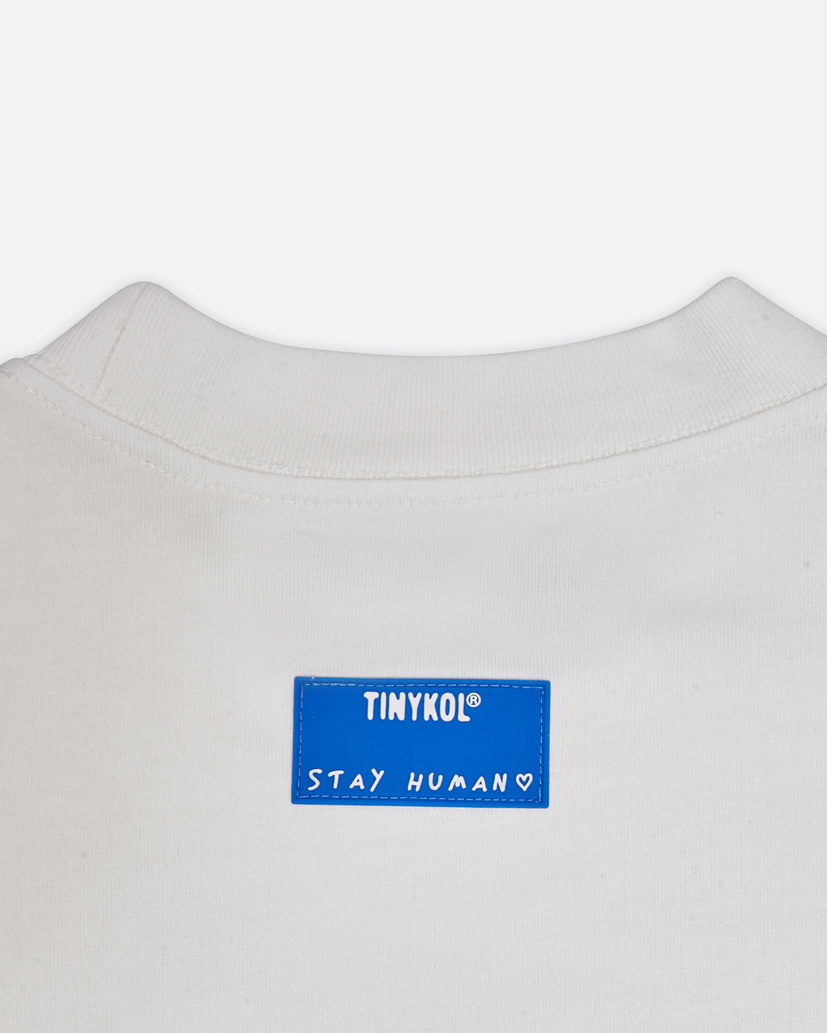 Digital printed graphic, Rubber label detailing, Pip label on sleeve, Woven hem label
