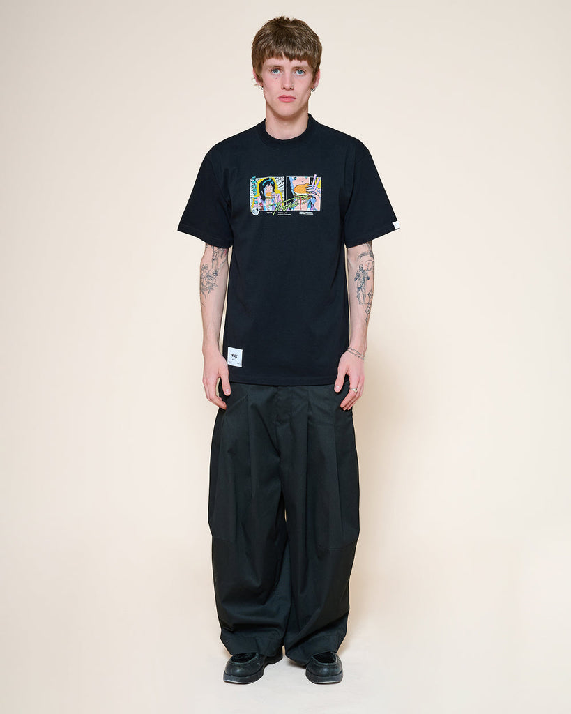 DTF print, Rubber label detailing, Pip label on sleeve, Woven hem label