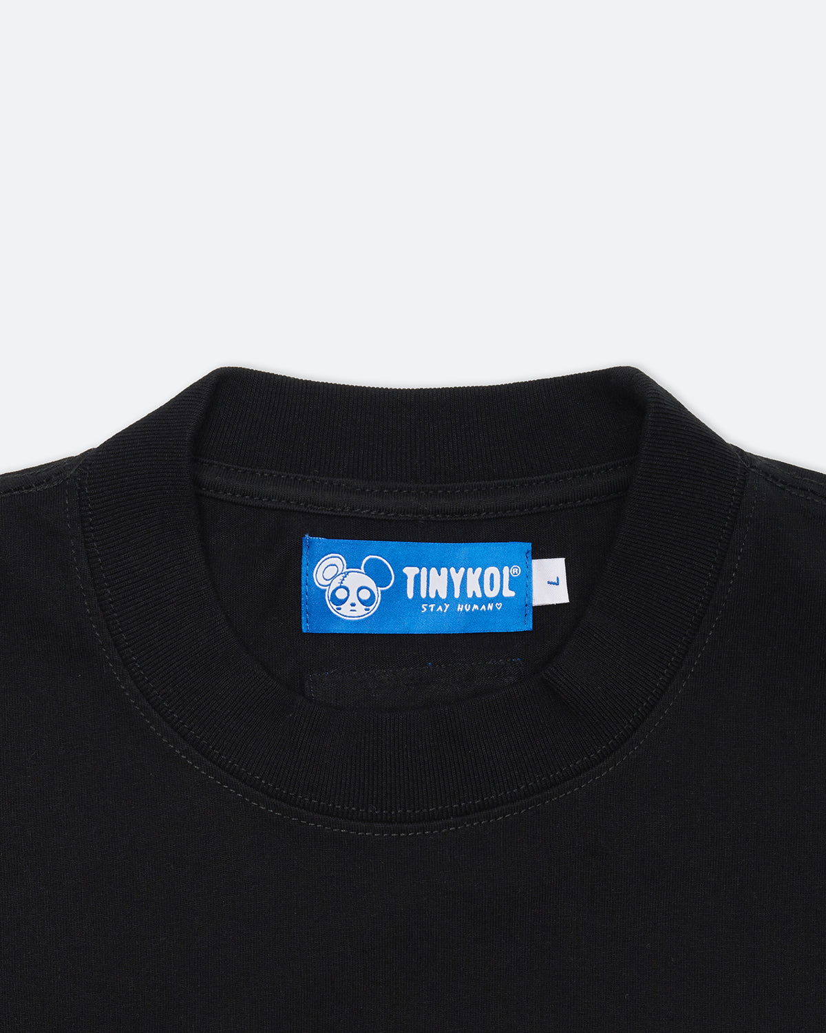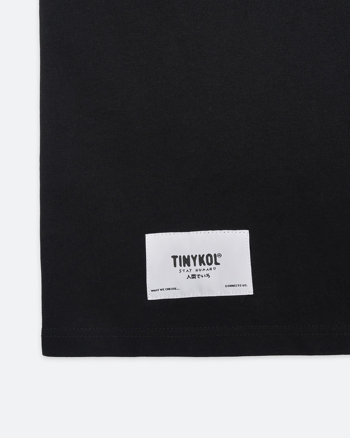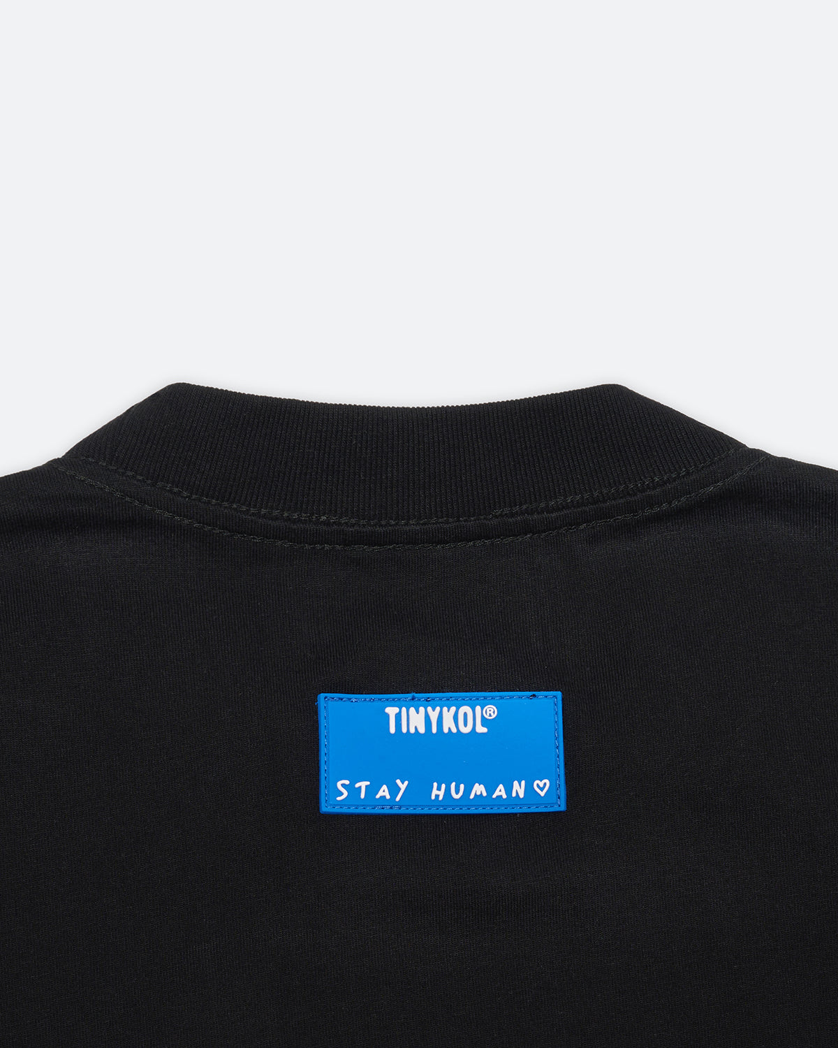DTF print, Rubber label detailing, Pip label on sleeve, Woven hem label